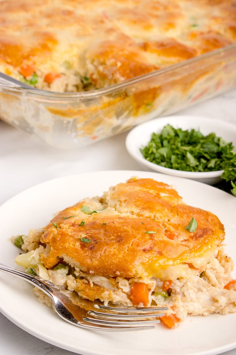 Pop that dish into the oven and bake for 45-50 minutes, or until the crust is golden brown and the casserole is hot and bubbly. And that’s it! Your viral TikTok Chicken Cobbler is ready to devour.